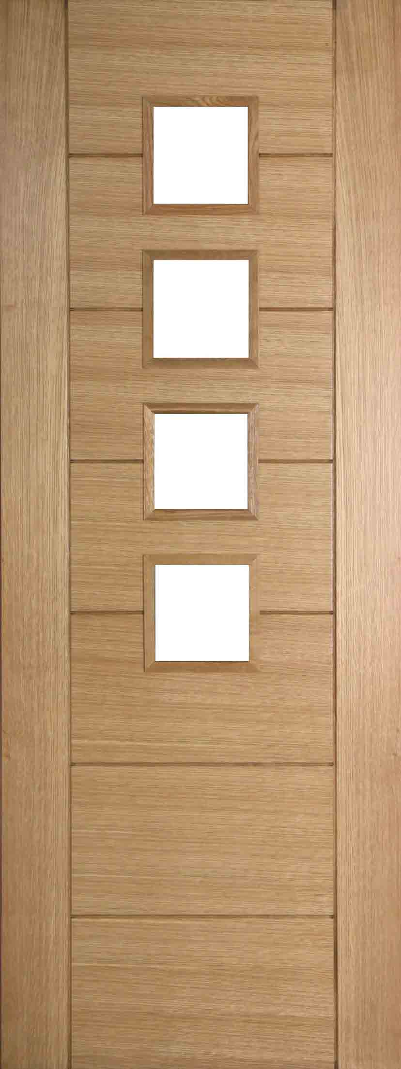 Doors have an Oak veneer and are factory prefinished with clear lacquer