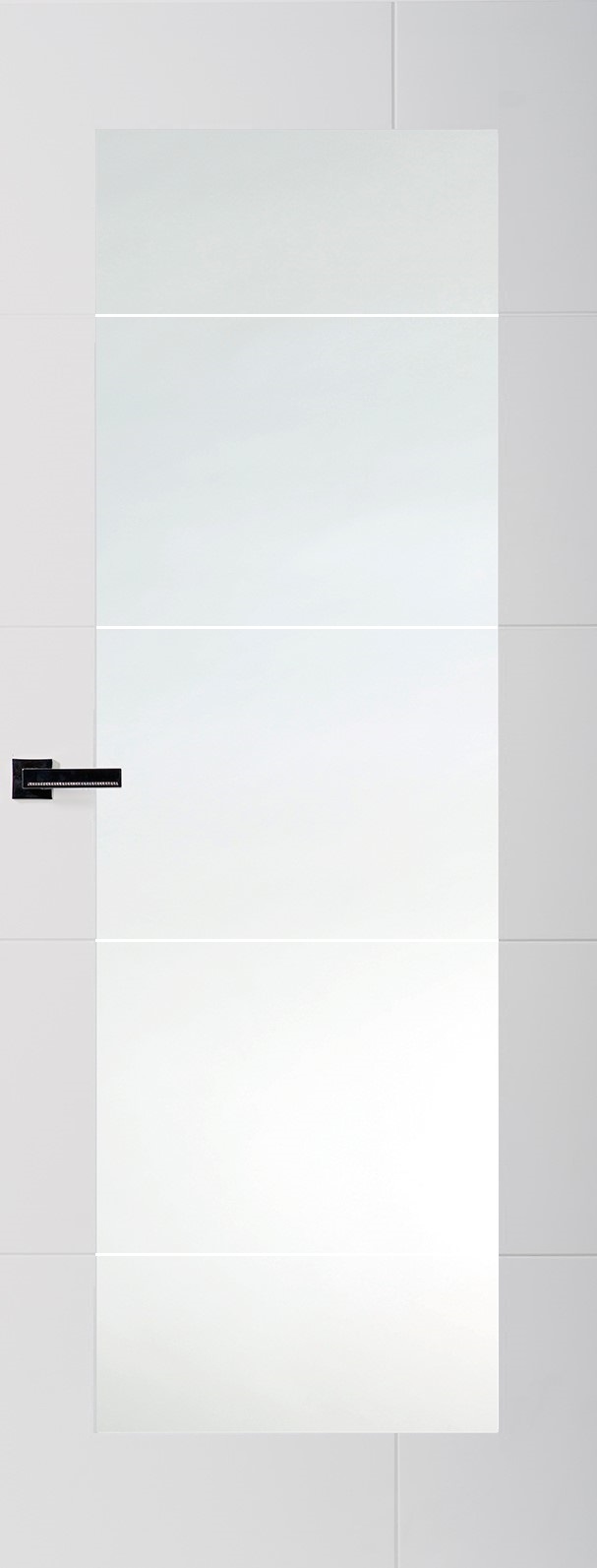 Doors are preglazed with 6.4mm clear laminated glass with horizontal Crystal Cut lines